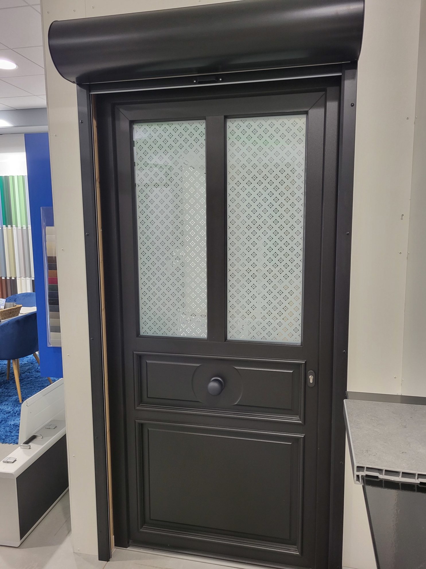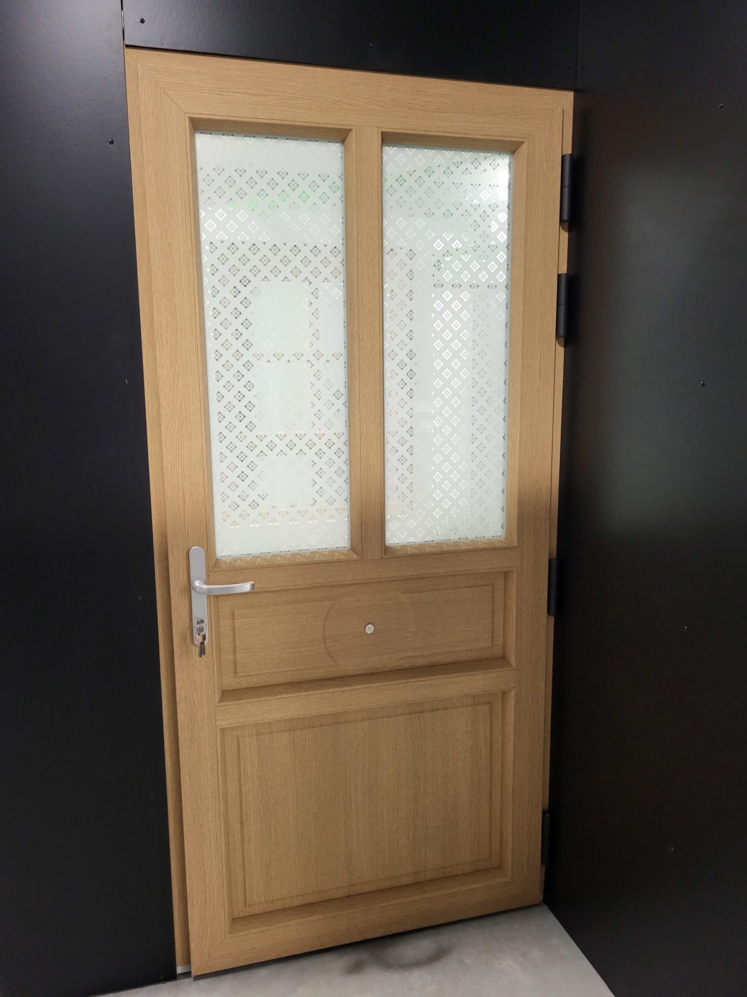 PORTE DU SHOWROOM A VENDRE SUITE A LA SORTIE DU FILM PVC CHENE CLAIR DE L’ASSORTIMENT DE TEINTE : vendue sans le volet